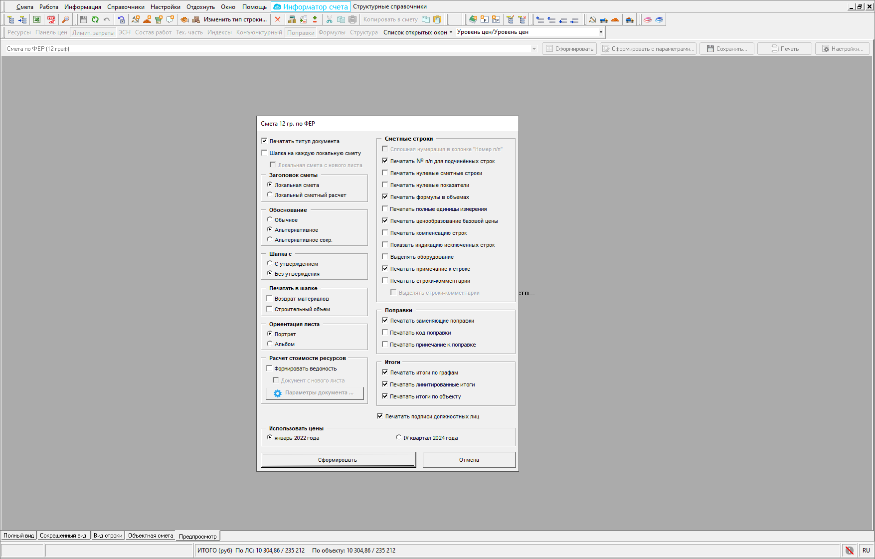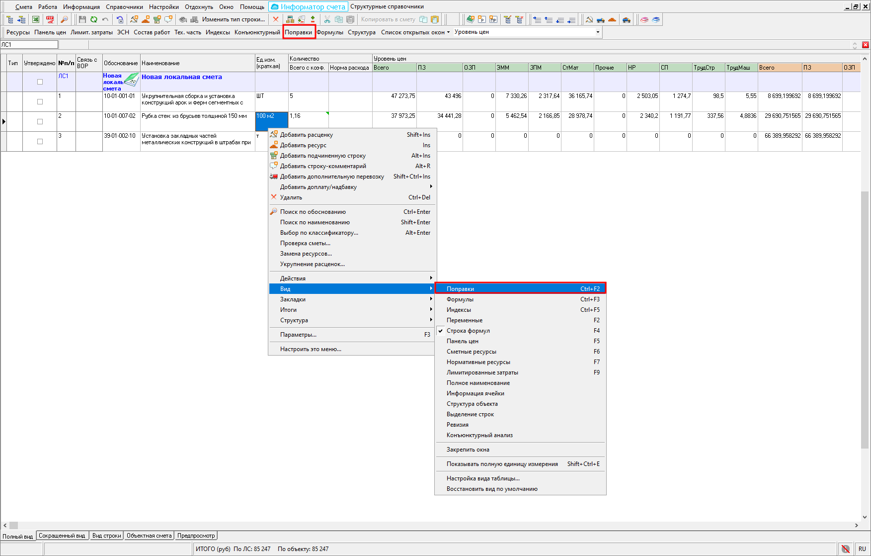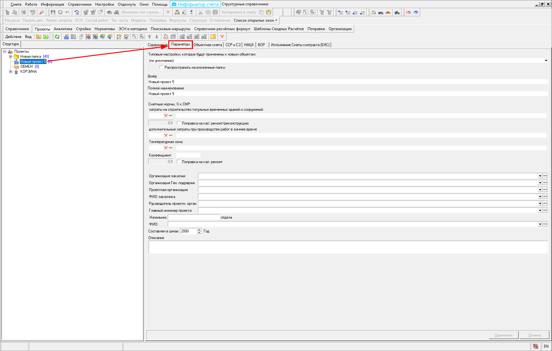 Параметры сметы можно изменять и в открытой смете, нажав клавишу F3.