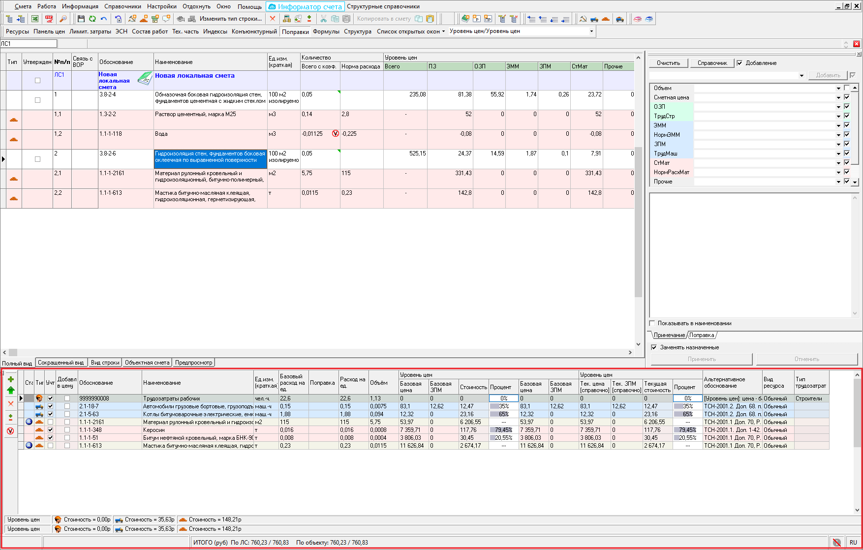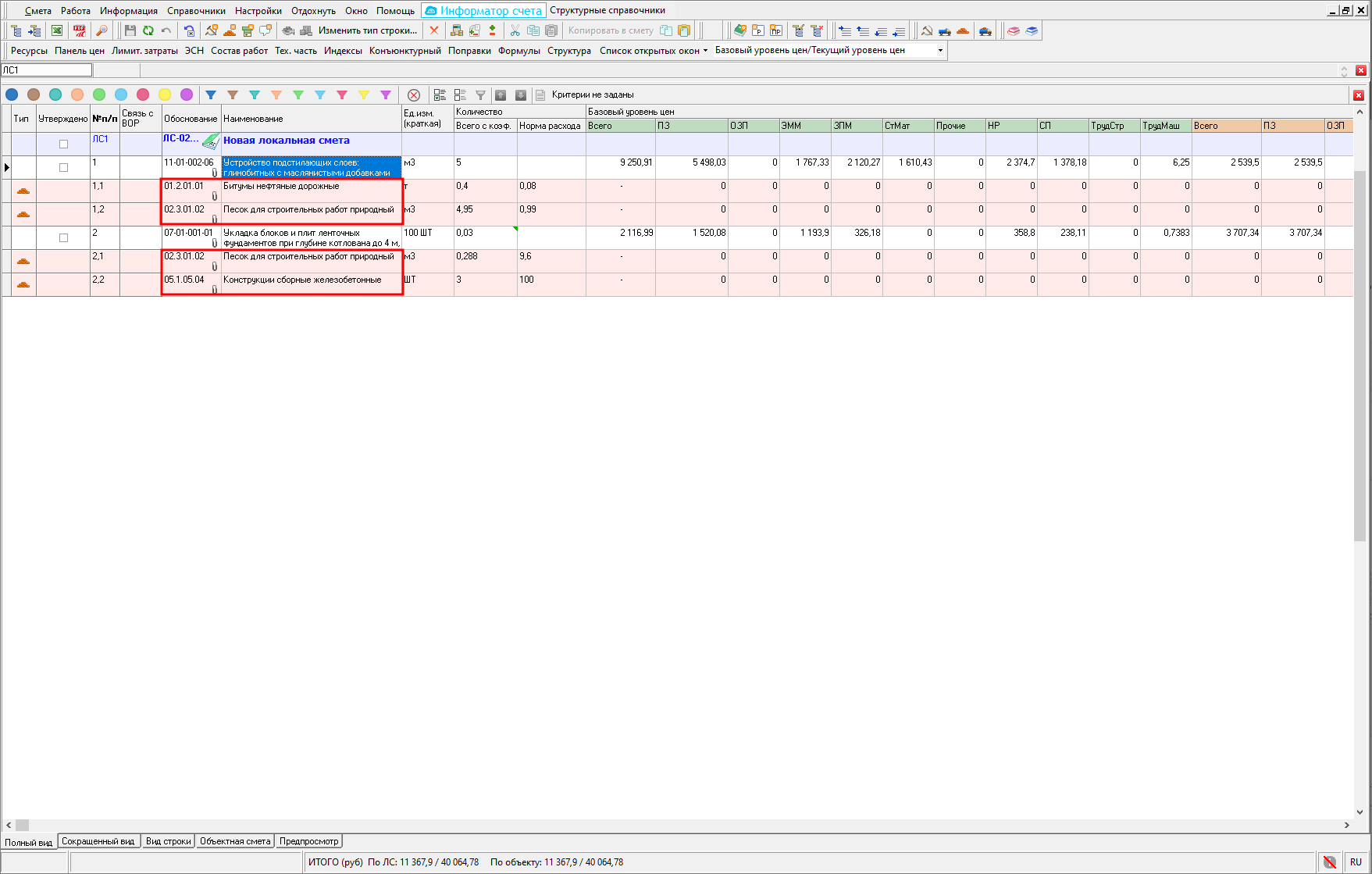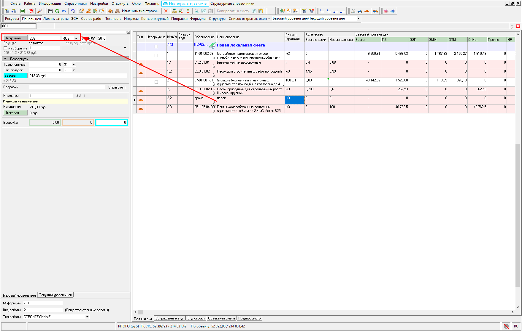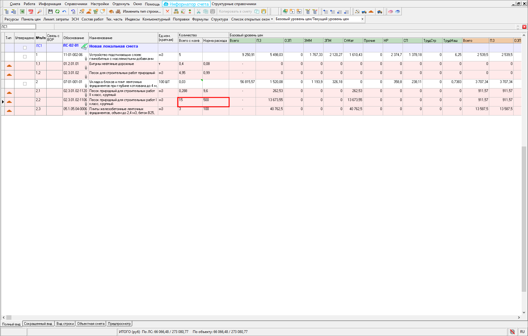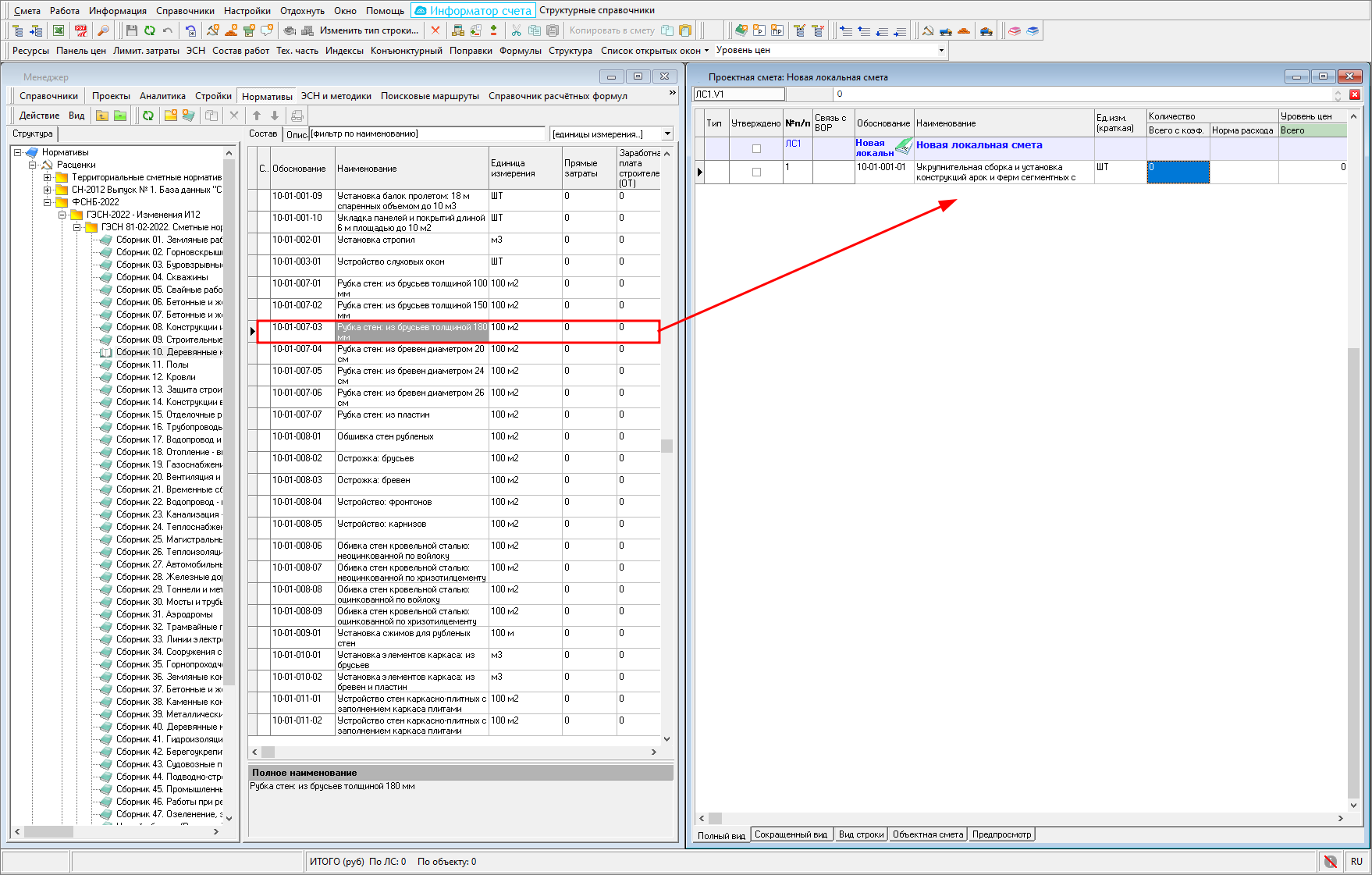 Или в структурной части окна выделите смету и нажмите клавишу Enter