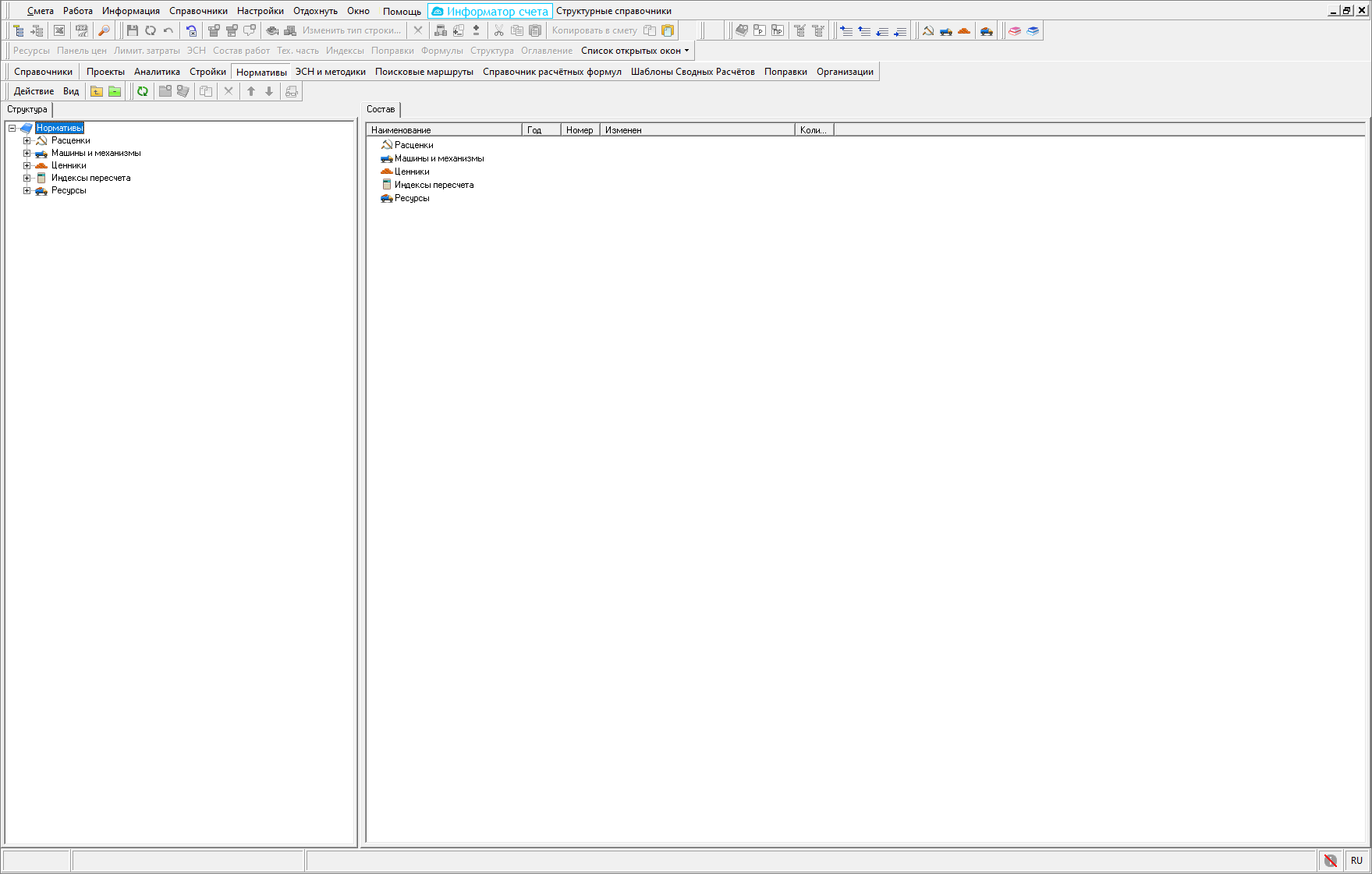 В открытой смете необходимо перейти к сборнику нормативов, нажав соответствующую кнопку на панели инструментов