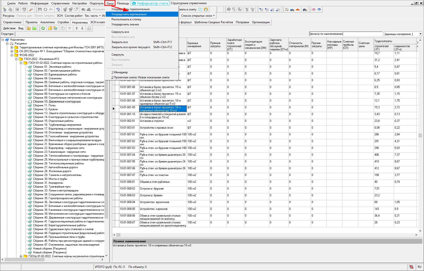 Можно воспользоваться прямым перетаскиваем нормативов из сборника в смету. Для этого нажмите в главном меню "Окно" – "Упорядочить вертикально"